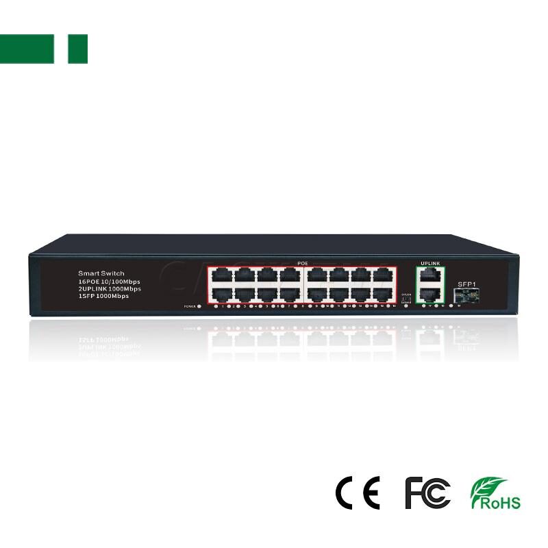 ANGA CPE-6162BE 16 Port POE Switch(16+2 Built-in),16*10/100Mbps PoE ports,2*10/100/1000Mbps uplink port,1*10/100/1000Mbps SFP port