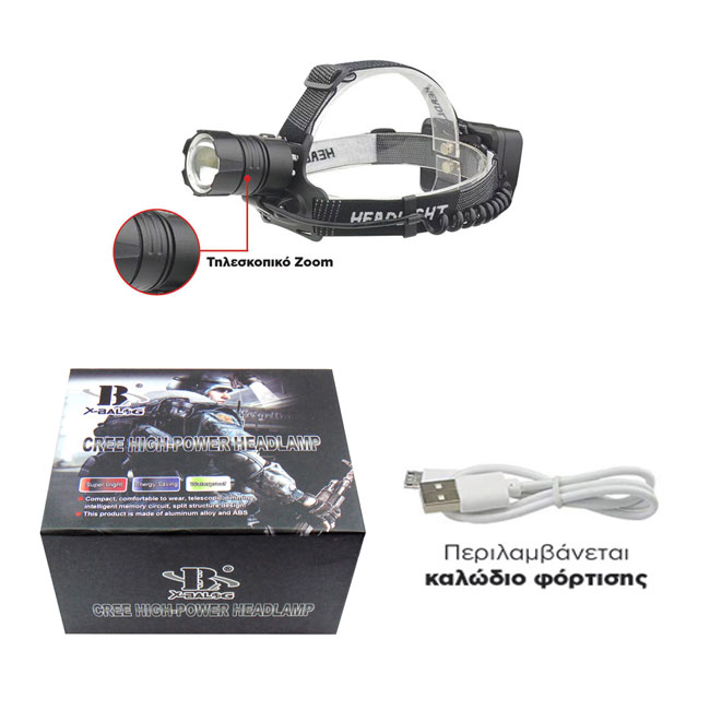 Φακός κεφαλής LED (Επαναφορτιζόμενος, αδιάβροχος)