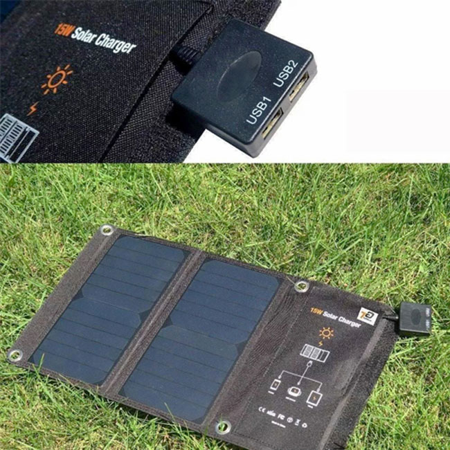 Φωτοβολταικός φορτιστής 5V με θύρα USB. Ελαφρύς, αναδιπλούμενος και ανθεκτικός στην βροχή.