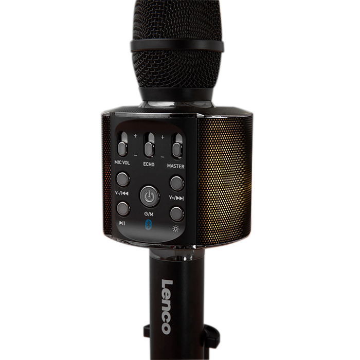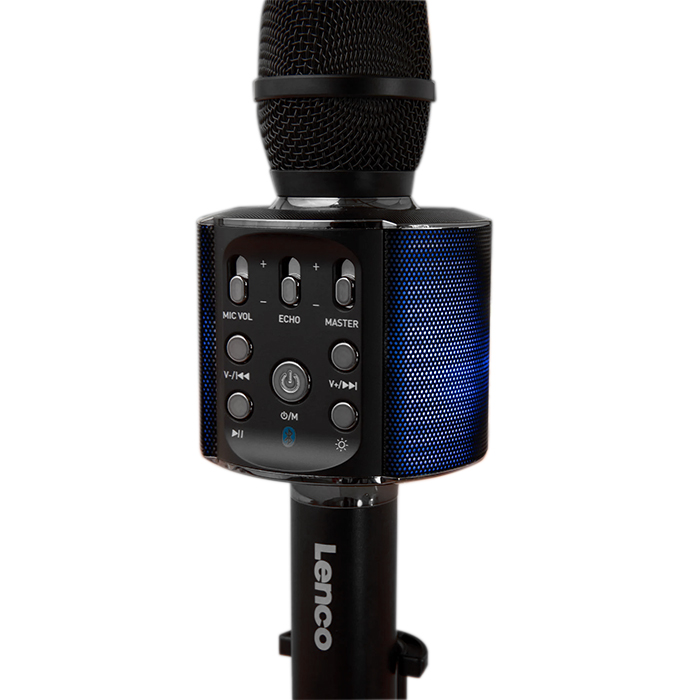 LENCO BMC-090BK Ασύρματο Bluetooth μικρόφωνο με ενσωματωμένο ηχείο, RGB φωτισμό και λειτουργία Karaoke.
