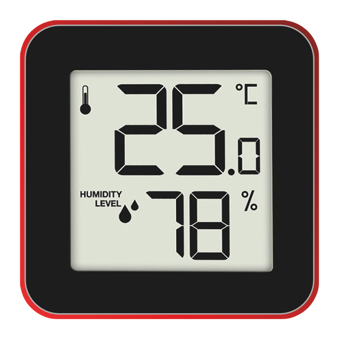 Κομψό, minimal και με αύρα πολυτελείας, με ευκρινή LCD οθόνη και ευανάγνωστα ψηφία, για να παρακολουθείτε την θερμοκρασία και τα επίπεδα υγρασίας στον χώρο σας, ενώ παράλληλα προσδίδει και μια κόκκινη πινελιά design στο σαλόνι σας. Μπορεί να τοποθετηθεί οπουδήποτε εσείς θέλετε στον χώρο σας, αφού λειτουργεί με μπαταρίες.