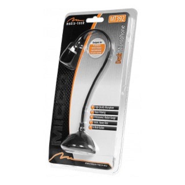 Μικρόφωνο H/Y Media-Tech MT392 Μαύρο με διακόπτη λειτουργίας και ευλύγιστο βραχίονα. Διαθέτει λειτουργία φιλτραρίσματος θορύβου ενώ η βάση είναι δυνατή και σταθερή.