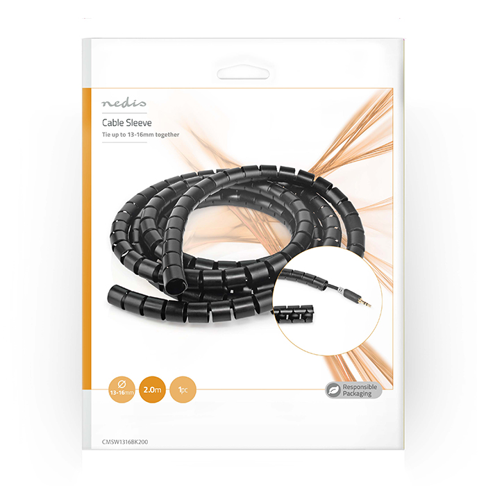 NEDIS CMSW1316BK200 Σπιράλ σωλήνας διαχείρισης καλωδίων με διάμετρο 16mm, σε μαύρο χρώμα. 233-2267
