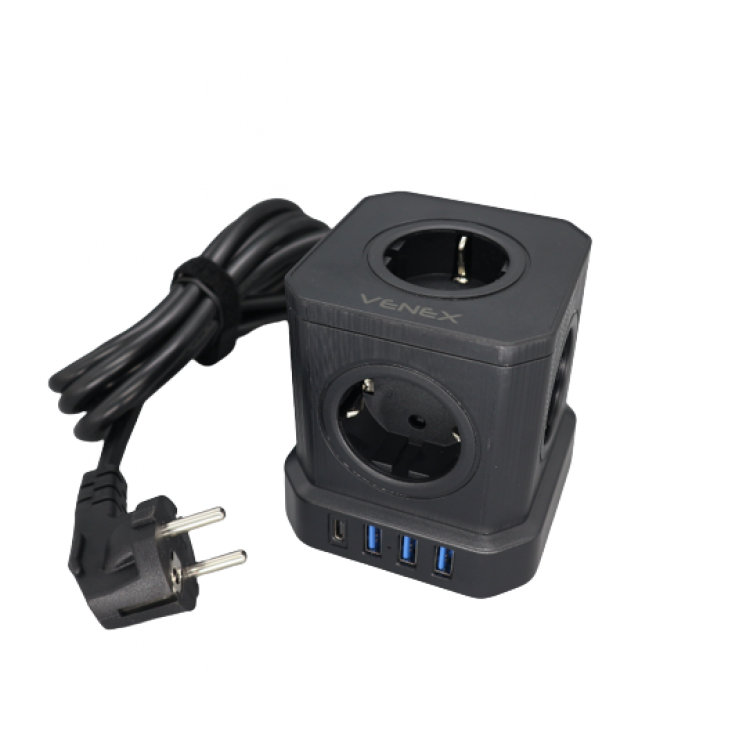 ΠΟΛΥΠΡΙΖΟ ΚΥΒΟΣ VENEX – 5 ΘΕΣΕΙΣ ΣΟΥΚΟ – 3 ΘΥΡΕΣ USB – 1 ΘΥΡΑ USB C (VB4U5E-C) 5207155005156